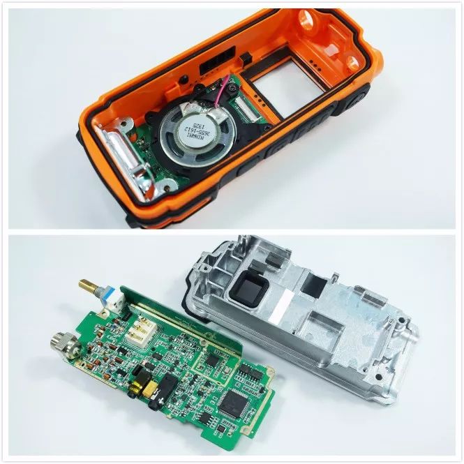 SHX-8800外觀非常醒目,以橙紅色為主基調(diào)搭配黑色線條勾勒和鍵盤點(diǎn)綴。鮮明的顏色是很多運(yùn)動對講機(jī)的特色,非常顯眼的外殼在一大堆裝備中很容易找到它,掉在地上、滾落到角落里、雪地里很容易被發(fā)現(xiàn),佩戴在身上也可以作為一個顯眼的標(biāo)志。國外消防對講機(jī)專門采用黃色和熒光綠色外殼也是相同道理。同時,其鍵盤具有背光,無論明暗環(huán)境都能輕松操作。 為強(qiáng)化產(chǎn)品的抗沖擊力,SHX-8800外殼采用了高強(qiáng)度的材料,其底部更特別設(shè)計了較軟的TPU材料包裹,在跌落時能夠起到一定的緩沖作用,提高了產(chǎn)品的抗跌落能力。激烈運(yùn)動時,身上掛墜的物品跌落是常事,可見該產(chǎn)品在設(shè)計時充分考慮了工作場景特點(diǎn)。 在耳機(jī)插口和電池接觸極片處,SHX-8800設(shè)計了膠塞和膠圈起到了一定的防水作用,增強(qiáng)了產(chǎn)品總體防水性能。廠家設(shè)計的防水防塵等級為IP55,可達(dá)到“防止噴射水侵入” (低壓噴水),在滑雪和短時小雨以及大霧場合都是完全可以勝任的。