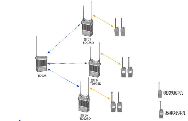 北峰應急通信“小系統”,通過便攜式跨段中繼臺BF-TR925D可實現不同職能部門的異網組網,兼容數字、模擬對講通信網絡,在各部門不調整原有通信頻率的基礎上,實現跨部門統一通信調度。同時,各通的職能部門可以實現一鍵互轉,讓總指揮可以直接通一線人員并網通話,提高指令上傳下達效率。