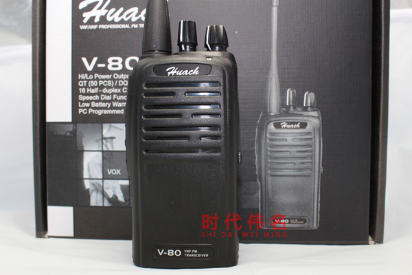 華創(chuàng)V80擁有超迷你外觀(guān)設(shè)計(jì),輕巧外形。華創(chuàng)V80采用限時(shí)發(fā)射功率(TOT)技術(shù),強(qiáng)抗干擾性,緊急報(bào)警功能。 | | 功率:1W/5W/4W 頻率:VHF:136-174MHz UHF:350-390MHz 403-470MHz 機(jī)身尺寸: 109x58x38mm ( 不包括天線(xiàn)) 重量:210g (大約.) 距離:5-10公里 (開(kāi)闊地) 功能特點(diǎn): 超迷你型外觀(guān)設(shè)計(jì) , 輕巧外型 第16信道掃描 QT (50組)/DQT (106組) 寬/窄帶可轉(zhuǎn)換 限時(shí)發(fā)射功能(TOT) 強(qiáng)抗干擾性 緊急報(bào)警功能 省電及低電壓警報(bào)功能 電腦編程