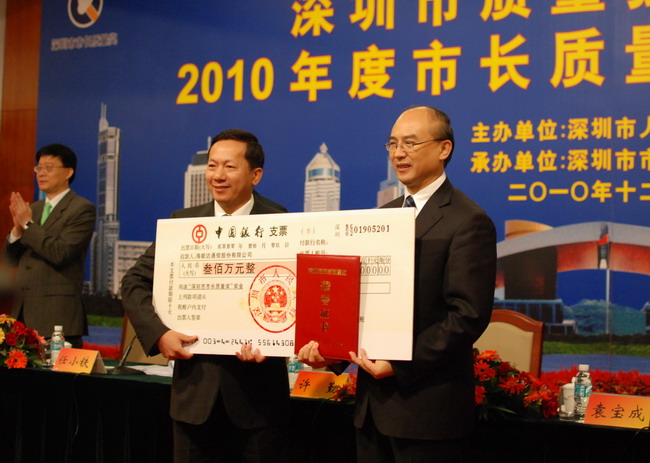 主頁(yè)(http://www.130131.com):海能達(dá)榮獲2010年深圳市長(zhǎng)質(zhì)量獎(jiǎng) 12月22日,“深圳市質(zhì)量強(qiáng)市動(dòng)員暨2010年度市長(zhǎng)質(zhì)量獎(jiǎng)?lì)C獎(jiǎng)大會(huì)”在深圳市市民中心隆重舉行。根據(jù)《深圳市市長(zhǎng)質(zhì)量獎(jiǎng)評(píng)定管理辦法》和“深圳市市長(zhǎng)質(zhì)量獎(jiǎng)”評(píng)定標(biāo)準(zhǔn),深圳市組織開展了2010年度“深圳市市長(zhǎng)質(zhì)量獎(jiǎng)”評(píng)選活動(dòng),海能達(dá)通信股份有限公司、招商證券股份有限公司獲此殊榮。深圳市市長(zhǎng)許勤為兩家企業(yè)進(jìn)行了頒獎(jiǎng),與此同時(shí),市政府還分別給予兩家獲獎(jiǎng)企業(yè)300萬元獎(jiǎng)勵(lì)。 深圳市市長(zhǎng)質(zhì)量獎(jiǎng),是深圳市政府借鑒美國(guó)波多里奇國(guó)家質(zhì)量獎(jiǎng)(Baldrige National Quality Award,簡(jiǎn)稱BNQA)和中國(guó)國(guó)家質(zhì)量管理獎(jiǎng)的成功經(jīng)驗(yàn),設(shè)立的綜合性質(zhì)量領(lǐng)域最高獎(jiǎng)。也是國(guó)內(nèi)第一個(gè)以“市長(zhǎng)質(zhì)量獎(jiǎng)”命名的政府質(zhì)量獎(jiǎng),用于表彰深圳市在質(zhì)量經(jīng)營(yíng)方面取得卓越績(jī)效的企業(yè)或組織,引導(dǎo)和激勵(lì)廣大企業(yè)或組織建立和實(shí)施卓越績(jī)效模式,提高出品質(zhì)量,持續(xù)改進(jìn)經(jīng)營(yíng)業(yè)績(jī),增強(qiáng)深圳市經(jīng)濟(jì)的綜合競(jìng)爭(zhēng)力。 海能達(dá)自2004年引入卓越績(jī)效管理模式。通過六年來的持續(xù)改進(jìn),海能達(dá)建立了完善的股份制企業(yè)治理結(jié)構(gòu),完成了企業(yè)文化、戰(zhàn)略管理、顧客關(guān)系管理、人本管理、測(cè)量分析與改進(jìn)等多方面的系統(tǒng)整合,實(shí)現(xiàn)了從代理到自主研發(fā)、從終端到系統(tǒng)到解決方案,從模擬技術(shù)到數(shù)字技術(shù),從產(chǎn)品開發(fā)到標(biāo)準(zhǔn)制訂等重大戰(zhàn)略轉(zhuǎn)型,海能達(dá)近年來的經(jīng)營(yíng)業(yè)績(jī)得到穩(wěn)步高速發(fā)展。此外,海能達(dá)數(shù)年來全力投入數(shù)字技術(shù)研發(fā),努力開拓全球市場(chǎng),積極參予國(guó)際數(shù)字標(biāo)準(zhǔn)的制定,并牽頭制定我國(guó)數(shù)字集群及對(duì)講機(jī)的標(biāo)準(zhǔn),通過十多年來的努力,海能達(dá)己成為全球領(lǐng)先的專網(wǎng)通信骨干企業(yè)。 海能達(dá)董事長(zhǎng)兼總裁陳清州在頒獎(jiǎng)大會(huì)發(fā)表獲獎(jiǎng)感言,他表示:“獲獎(jiǎng)是一種榮譽(yù),更是一種鞭策。我們將堅(jiān)持不懈地推行卓越績(jī)效管理,抓住歷史機(jī)遇,加快技術(shù)創(chuàng)新與企業(yè)質(zhì)量管理,加快企業(yè)發(fā)展,努力從“中國(guó)行業(yè)龍頭企業(yè)”走向“全球?qū)>W(wǎng)產(chǎn)業(yè)領(lǐng)先企業(yè)”;同時(shí),積極參予社會(huì)活動(dòng),以實(shí)際行動(dòng)回報(bào)社會(huì)各界的關(guān)愛與扶持,將與其它企業(yè)積極分享卓越績(jī)效模式的推廣經(jīng)驗(yàn),為深圳市建成國(guó)際化創(chuàng)新型城市做出積極貢獻(xiàn)!” 許勤市長(zhǎng)給海能達(dá)頒發(fā)獲獎(jiǎng)證書和獎(jiǎng)金