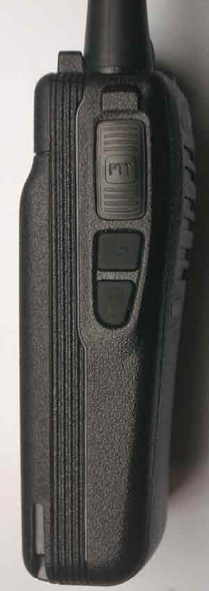 SMP508整機(jī)全配重量只有245克非常輕巧,這可能與其選用了高能量比的鋰電池有關(guān)。整機(jī)可調(diào)整的旋鈕和按鍵不多,能顯示的信息只有一只雙色LED指示燈,全沒有業(yè)余機(jī)的花哨。兩只旋鈕設(shè)在機(jī)器頂部,分別是16檔位的頻道旋鈕和帶電源開關(guān)的音量調(diào)整電位器。三只按鍵安排在面板左側(cè),分別是PTT鍵、監(jiān)聽鍵和掃描/呼叫鍵。附件接口設(shè)在面板右側(cè),僅有麥克和耳機(jī)插孔,且還兼用于電腦寫頻或有線復(fù)制時的通訊接口。從這些配置可以看出該機(jī)型是針對專業(yè)無線通訊市場推出的產(chǎn)品。