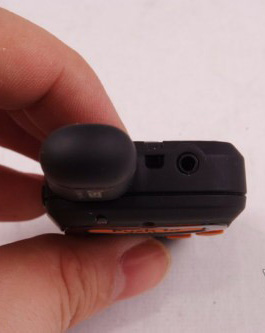 TP391的最上方是掛繩孔和耳機(jī)插口,同時(shí)耳機(jī)插口也是充電口。TP391的耳機(jī)采用專用的2.5插口專用耳機(jī),并不是所有的耳機(jī)都可以采用。整機(jī)的左側(cè)邊是呼叫鍵,可以呼叫同一頻率的用戶。