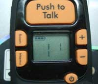 對(duì)講機(jī)不需要像手機(jī)一樣的液晶屏,只有一塊很小的屏幕顯示一些基本信息足以。屏幕上方是巨大的通話鍵,旁邊則是功能鍵,下方的開關(guān)機(jī)鍵就組成了T391的鍵盤區(qū)。最下方是TP391的揚(yáng)聲器,大家不要以為揚(yáng)聲器也是麥克風(fēng),麥克風(fēng)其實(shí)是通話鍵上方的那個(gè)小孔,旁邊是指示燈。