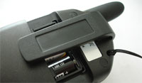 對講機的左側面是對講按鍵,只要按住就可以實現通話,按鍵上特別設置防滑塑料,人性化的設計。