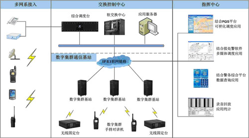 系統(tǒng)可接入模擬集群、常規(guī)轉(zhuǎn)信和Tetra集群通信等不同通信網(wǎng)絡(luò),實(shí)現(xiàn)綜合通信調(diào)度指揮。