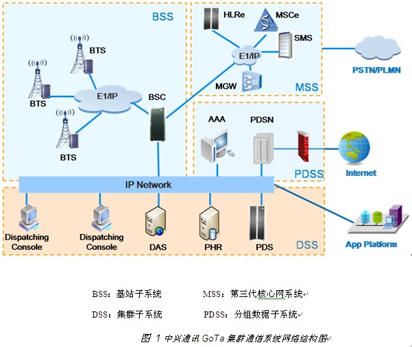 2、 GoTa集群通信系統(tǒng)的組成 一個基本的GoTa系統(tǒng)包括:BSS基站子系統(tǒng)、DSS集群子系統(tǒng)、MSS交換子系統(tǒng)、PDSS分組數(shù)據子系統(tǒng)、終端及其他擴展業(yè)務子系統(tǒng)。 BSS基站子系統(tǒng)由基站收發(fā)信機BTS和基站控制器BSC共同構成,主要完成集群業(yè)務、數(shù)據業(yè)務和普通電話業(yè)務的接入功能。為了能夠支持集群業(yè)務和可選的數(shù)據業(yè)務,基站子系統(tǒng)在技術實現(xiàn)上還包括調度客戶端PDC和分組數(shù)據控制實體PCF。 DSS集群子系統(tǒng),主要包括集群調度服務器PDS、集群歸屬寄存器PHR和調度臺代理服務器(服務器DAS+客戶端DAC)三個部分。其中調度臺代理服務器是可選設備,可為集團用戶提供虛擬的調度服務,建立集團調度的虛擬專網。DAS服務器采用主流PC服務器,基于典型B/S架構建立一個面向調度客戶端的站點。DAC客戶端登錄到DAS服務器站點,通過DAS與PDS、PHR的交互,執(zhí)行調度管理操作。 MSS交換子系統(tǒng)由多媒體網關MGW (Multimedia GateWay)、移動交換中心MSCe (Mobile Switching Center)、歸屬位置寄存器HLRe (Home Location Register)以及短消息中心SMC(Short Message Center)等實體構成。 PDSS分組數(shù)據子系統(tǒng)完成GoTa系統(tǒng)的分組數(shù)據業(yè)務。分組交換核心網的功能實體包括:PDSN(分組數(shù)據服務節(jié)點)、AAA(認證、授權和計費)服務器。PCF功能實體則放在無線接入網(即BSC)側。 終端包括:商用手持終端、車載臺、固定臺,此外還可以根據用戶的具體需求開發(fā)低端手機(只含調度業(yè)務和語音業(yè)務)、專業(yè)終端(三防手機)等,以滿足不同部門、集團的多樣性要求。 3、 GoTa系統(tǒng)優(yōu)勢 GoTa系統(tǒng)基于CDMA技術,全面繼承CDMA的技術優(yōu)勢和業(yè)務優(yōu)勢。 ● 豐富的業(yè)務綜合能力 GoTa提供PTT對講、語音、寬帶數(shù)據等整套無線移動業(yè)務,可以滿足國家政府所有部門的無線通信應用需求。 ● 系統(tǒng)安全性和保密性高 GoTa基于先進成熟的CDMA技術,系統(tǒng)的安全性高于其他集群系統(tǒng),加上終端與系統(tǒng)的接入認證,GoTa具有更高的安全性,同時GoTa為用戶提供定制的端到端加密方案。因此對于國家政府各部門的業(yè)務使用具有足夠的安全保證。 ● 呼叫建立速度快,系統(tǒng)容量大 系統(tǒng)能在很短時間內迅速把成員呼起來;同時在局部地區(qū)業(yè)務量大,或緊急事件下其他公眾網癱瘓時,GoTa仍可保持集群業(yè)務。 ● 無線寬帶數(shù)據業(yè)務能力 GoTa基于3G平臺,在現(xiàn)有的集群系統(tǒng)中無線數(shù)據帶寬是最高的。為政府部門用戶提供了高帶寬的無線上網,圖像傳輸?shù)葻o線數(shù)據業(yè)務。 ● 網絡建設成本低 開放的標準技術體制,產業(yè)鏈完善,終端和系統(tǒng)性價比更高。GoTa以合理價格提供最優(yōu)的端到端專業(yè)集群網絡解決方案。 ● 成熟而廣泛的規(guī)模商用 已在全球二十多個國家和地區(qū)實現(xiàn)規(guī)模商用。在中國衛(wèi)通、中國鐵通、中國聯(lián)通、馬來西亞、挪威、斯里蘭卡、蒙古、加納、貝寧、科特迪瓦、利比里亞、蘇丹、摩洛哥、利比亞等地規(guī)模商用。 ● 專業(yè)的售后服務隊伍 中興已經在100多個國家建立了專門的客戶服務部門。憑著多年的電信網絡建設經驗,我們建立了專業(yè)的本地技術支持隊伍,為客戶提供24小時的服務,保證系統(tǒng)安全穩(wěn)定地工作。 4、 專業(yè)集群調度業(yè)務及增值業(yè)務 專業(yè)的GoTa數(shù)字集群系統(tǒng)相對模擬集群通信來講,業(yè)務功能和管理功能更加完善和強大。GoTa提供的專業(yè)集群調度功能,包括:基本集群業(yè)務,如單呼、組呼、緊急呼叫、廣播呼叫等,補充集群業(yè)務,如短號碼撥號、集群呼叫優(yōu)先級、、組成員優(yōu)先級、話權搶占、遲后接入、動態(tài)重組、限時通話、集群呼叫前轉、群組號碼顯示、呼叫限制、強插強拆、終端[l1] [l2] 狀態(tài)查詢、動態(tài)群組管理等等。同時,GoTa還支持普通語音業(yè)務、高速分組數(shù)據業(yè)務、短消息業(yè)務、定位業(yè)務、等眾多業(yè)務,充分滿足了政府部門的各種通訊業(yè)務需求。 4.1 集群業(yè)務 組呼:組呼指一個主叫方與多個被叫方(即一對多)之間的半雙工呼叫。呼叫過[L3] 程中,同一時刻只能有一個成員講話,其他成員只能聽;組內成員必須通過按住PTT鍵申請話權才能講話。當有多個成員同時申請話權時,系統(tǒng)可以對多個成員的話權申請進行排隊;但是高優(yōu)先級的成員可以直接搶占低優(yōu)先級組成員的話權。
