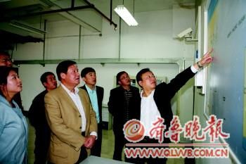 青島聯(lián)通黨委書記魏德勝(中)與總經(jīng)理?xiàng)顟c友(右)在視察通信機(jī)房。