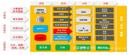 主頁(http://www.130131.com):大數(shù)據(jù)對(duì)于智慧城市建設(shè)的作用 2013年1月29日,住房和城鄉(xiāng)建設(shè)部公布了首批90個(gè)國(guó)家智慧城市試點(diǎn)名單,試點(diǎn)城市的公布標(biāo)志著我國(guó)智慧城市發(fā)展進(jìn)入規(guī)模推廣的階段。在目前智慧城市的發(fā)展階段,主要的應(yīng)用還處于對(duì)感知設(shè)備傳遞的信息進(jìn)行簡(jiǎn)單處理的水平,充分認(rèn)識(shí)大數(shù)據(jù)對(duì)于智慧城市建設(shè)的關(guān)鍵作用,對(duì)于避免智慧城市建設(shè)中出現(xiàn)“重感知,輕智慧”的通病具有重要意義。本文將對(duì)智慧城市的內(nèi)涵、發(fā)展現(xiàn)狀、大數(shù)據(jù)對(duì)于智慧城市建設(shè)的作用以及存在的問題進(jìn)行討論,并對(duì)我國(guó)智慧城市發(fā)展提出建議。一、智慧城市是實(shí)現(xiàn)城市可持續(xù)發(fā)展的必經(jīng)之路 智慧城市是通過物與物、物與人、人與人的互聯(lián)互通能力、全面感知能力和信息利用能力,通過物聯(lián)網(wǎng)、移動(dòng)互聯(lián)網(wǎng)、云計(jì)算等新一代信息技術(shù),實(shí)現(xiàn)城市高效的政府管理、便捷的民生服務(wù)、可持續(xù)的產(chǎn)業(yè)發(fā)展。“智慧城市”旨在利用新一代信息技術(shù),改變?nèi)藗兘换サ姆绞,提高信息?shí)時(shí)處理能力及感應(yīng)與響應(yīng)的速度,增強(qiáng)業(yè)務(wù)彈性和連續(xù)性,提高資源利用效率,實(shí)現(xiàn)綠色節(jié)能化,促進(jìn)社會(huì)各項(xiàng)事業(yè)的全面可持續(xù)發(fā)展,因此受到各國(guó)政府的歡迎,全球發(fā)達(dá)和部分發(fā)展中國(guó)家、地區(qū)、城市由地方政府主導(dǎo),各有側(cè)重的推動(dòng)智慧城市建設(shè)。 目前全國(guó)開始建設(shè)智慧城市的地方遍及東中西部。從城市類型看,除了京、滬、廣、深等一線城市外,杭州、廈門、珠海等一些東部沿海地區(qū)的經(jīng)濟(jì)發(fā)達(dá)城市,也紛紛開始智慧城市建設(shè)。另外,湖北、湖南、山東、遼寧、四川、河南、安徽等省則提出建設(shè)智慧城市群。從各城市的智慧城市建設(shè)內(nèi)容來看,一方面是加強(qiáng)城市基礎(chǔ)通信網(wǎng)絡(luò)建設(shè),提高通信網(wǎng)絡(luò)帶寬及覆蓋率;另一方面是在重點(diǎn)領(lǐng)域的提供智慧應(yīng)用服務(wù),如智慧公共服務(wù)、智慧社會(huì)管理、智慧交通、智慧醫(yī)療、智慧物流、智慧安居等。 從整體投資規(guī)模來看,到2012年底全國(guó)開建智慧城市的城市數(shù)超過180個(gè),通信網(wǎng)絡(luò)和數(shù)據(jù)平臺(tái)等基礎(chǔ)設(shè)施建設(shè)投資規(guī)模接近5000億元。“十二五”期間智慧城市建設(shè)拉動(dòng)的設(shè)備投資規(guī)模將達(dá)1萬億元人民幣,新一輪產(chǎn)業(yè)機(jī)會(huì)即將到來。 二、大數(shù)據(jù)是智慧城市的智慧引擎 智慧城市是城市信息化向智慧化發(fā)展的必經(jīng)階段,同時(shí)在建設(shè)智慧城市過程中也會(huì)帶動(dòng)相關(guān)產(chǎn)業(yè)的整體發(fā)展,成為經(jīng)濟(jì)轉(zhuǎn)型、產(chǎn)業(yè)升級(jí)、城市提升的新引擎。 從智慧城市的體系結(jié)構(gòu)來看,由于智慧城市的基礎(chǔ)在于物聯(lián)網(wǎng)技術(shù),因此智慧城市體系架構(gòu)和物聯(lián)網(wǎng)的體系結(jié)構(gòu)相類似,也可分為四層,分別為感知層、傳輸層、平臺(tái)層、應(yīng)用層。智慧城市相對(duì)于之前數(shù)字城市概念,最大的區(qū)別在于對(duì)感知層獲取的信息進(jìn)行了智慧的處理,因此也可以認(rèn)為智慧城市是數(shù)字城市的升級(jí)版。由城市數(shù)字化到城市智慧化,關(guān)鍵是要實(shí)現(xiàn)對(duì)數(shù)字信息的智慧處理,其核心是引入了大數(shù)據(jù)處理技術(shù)。 ![]() 圖1 智慧城市體系架構(gòu) 大數(shù)據(jù)技術(shù)是處理感知層數(shù)據(jù)的必然選擇 感知層是智慧城市體系對(duì)現(xiàn)實(shí)世界進(jìn)行感知、識(shí)別和信息采集的基礎(chǔ)性物理網(wǎng)絡(luò),海量的數(shù)據(jù)在感知層產(chǎn)生。以視頻監(jiān)控為例,北京目前用于視頻監(jiān)控的攝像頭有50萬個(gè),一個(gè)攝像頭一個(gè)小時(shí)的數(shù)據(jù)量就是幾G,每天北京市的視頻采集數(shù)據(jù)量在3PB左右,而一個(gè)中等城市每年視頻監(jiān)控產(chǎn)生的數(shù)據(jù)在300PB左右,這些攝像頭實(shí)時(shí)回傳信息,海量數(shù)據(jù)對(duì)數(shù)據(jù)存儲(chǔ)、并發(fā)處理的要求是近乎苛刻的。同時(shí),對(duì)于海量數(shù)據(jù)的處理不單是智慧化的必然要求,同時(shí)也是對(duì)IT投資的一種保護(hù),否則非但不能充分挖掘數(shù)據(jù)的價(jià)值,還將為海量數(shù)據(jù)所累。 ![]() 圖2 智慧城市的大數(shù)據(jù)處理應(yīng)用 從上圖可以看出,大量各種類型的數(shù)據(jù)進(jìn)入數(shù)據(jù)庫(kù),經(jīng)過組織、分析、決策之后,將最后的處理結(jié)果提供給決策者供參考,形成了完整的大數(shù)據(jù)處理流程。如在智慧交通領(lǐng)域,目前已經(jīng)實(shí)現(xiàn)了通過對(duì)交通流量的監(jiān)測(cè),從而動(dòng)態(tài)調(diào)節(jié)紅綠燈的間隔時(shí)間,實(shí)現(xiàn)緩解擁堵的目的,此外還可以為司機(jī)提供優(yōu)化的行