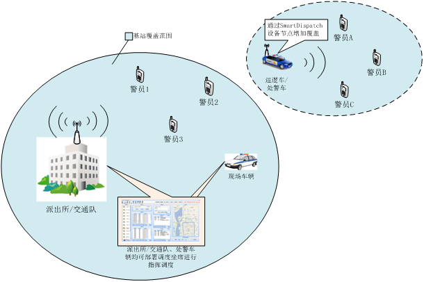 解決方案: 配備SmartDispatch設(shè)備節(jié)點(diǎn)的巡邏車或現(xiàn)場(chǎng)處警車輛,可實(shí)現(xiàn)脫離基站范圍的信號(hào)覆蓋。解決了盲點(diǎn)地區(qū)的巡邏及處警問題。(2)通過派接實(shí)現(xiàn)各種不同終端的互通 通過SmartDispatch設(shè)備節(jié)點(diǎn),實(shí)現(xiàn)TETRA、PDT、1327等不同制式終端的互聯(lián)互通。(3)與其他網(wǎng)絡(luò)的互聯(lián)互通 SmartDispatch設(shè)備節(jié)點(diǎn)提供GSM/CDMA、PSTN的接入,實(shí)現(xiàn)終端與外網(wǎng)的通訊。(4)基層單位、巡邏車可部署調(diào)度坐席 基層單位(派出所/交通隊(duì))、處警車、巡邏車均可部署調(diào)度坐席,通過短信、gis等多種手段輔助揮調(diào)度工作。 (5)結(jié)合gis實(shí)現(xiàn)警力最優(yōu)部署 通過gis,可以對(duì)轄區(qū)內(nèi)警力合理部署,方便對(duì)于事件現(xiàn)場(chǎng)的實(shí)時(shí)監(jiān)控和指揮調(diào)度。(6)錄音記錄處警過程 還原某時(shí)間段內(nèi)的通話過程,在調(diào)度會(huì)議總結(jié)工作與事故排查中,最大限度發(fā)揮了錄音功能的優(yōu)勢(shì) (中國(guó)集群通信網(wǎng) | 責(zé)任編輯:陳曉亮) |