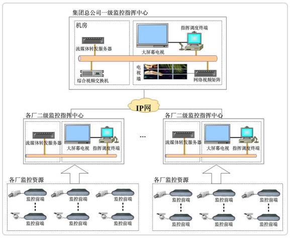 圖1 安全生產(chǎn)企業(yè)視頻指揮調度系統(tǒng)結構示意圖