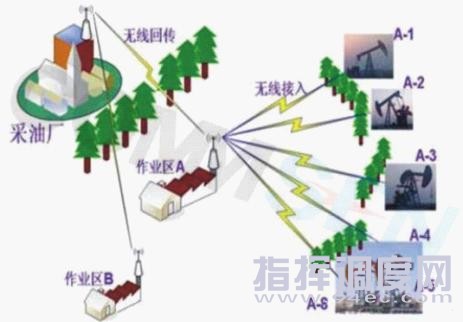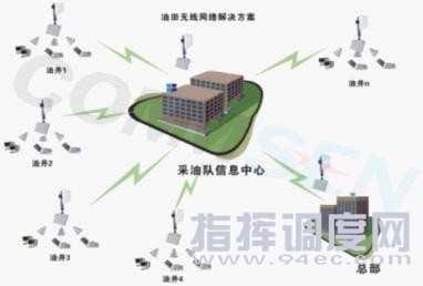 在方圓幾十平方公里的油田開采區(qū)域內(nèi),為實現(xiàn)實時檢測抽油機的運行狀態(tài),有效降低了不法分子的破壞活動,提高了油井運行的時率,在各單井、計轉(zhuǎn)站和聯(lián)合站等生產(chǎn)現(xiàn)場,設置無線監(jiān)控點;在油田總控室,建立系統(tǒng)中心基站。選用我公司COMMSEN(科訊無線)的電信級無線網(wǎng)橋產(chǎn)品,配合高增益天線,采用點對多點的無線連接方式,建立油田總控室與各監(jiān)控點間的無線傳輸主鏈路,實現(xiàn)生產(chǎn)現(xiàn)場圖像信息、生產(chǎn)數(shù)據(jù)、設備運轉(zhuǎn)數(shù)據(jù)、原油儲備和運輸信息等的實時動態(tài)傳輸,為采油生產(chǎn)的指揮調(diào)度提供準確及時的第一手資料。