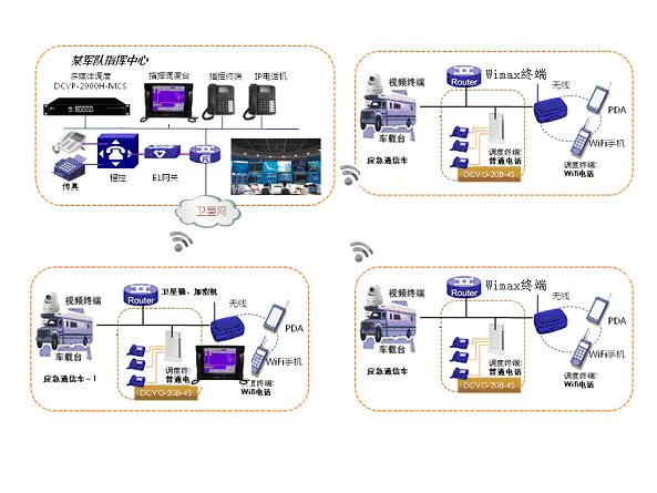 主頁(http://www.130131.com):神州數(shù)碼:軍隊應(yīng)急通信車指揮調(diào)度系統(tǒng) 項目背景應(yīng)急通信車群由綜合通信車、各指揮作業(yè)車組成,共6輛車。擔負起演習、重大活動的通信保障和突發(fā)事件的應(yīng)急通信任務(wù)。集有線、無線、視頻圖像、計算機網(wǎng)絡(luò)和動態(tài)監(jiān)控等“五大系統(tǒng)”為一體,具備自動電話、保密傳真、視頻指揮、多媒體調(diào)度等多種手段為一體的指揮調(diào)度系統(tǒng),確保指揮通信時時通、處處通、擾中通、動中通,極大提升軍區(qū)戰(zhàn)斗力。 應(yīng)急指揮調(diào)度系統(tǒng)能夠解決以下問題: 。1)綜合通信車、各指揮作業(yè)車間電話小號直撥,免費溝通; 。2)綜合通信車、各指揮作業(yè)車間加密傳真互通; 。3)各指揮作業(yè)車電話撥9到綜合通信車人工臺,實現(xiàn)轉(zhuǎn)接服務(wù);也可撥8到調(diào)度臺實現(xiàn)各種轉(zhuǎn)接服務(wù),兩套系統(tǒng)互為備份; 。4)綜合通信車調(diào)度臺,顯示所有指揮作業(yè)車上電話的狀態(tài),點擊撥號,強插、強插、錄音、會議、廣播、轉(zhuǎn)接等服務(wù),可實現(xiàn)監(jiān)控聯(lián)動,監(jiān)控圖像與作業(yè)車電話捆綁,點擊呼叫; 通過2M衛(wèi)星鏈路,應(yīng)急通信車群與指揮中心,還能實現(xiàn)以下功能: 。1)應(yīng)急指揮車群與指揮中心互相小號一次直撥,免費溝通; 。2)應(yīng)急指揮車群與指揮中心加密傳真和加密電話互通; (3)每輛指揮車,一部電話均可實現(xiàn),拿起直接到1號臺,每部電話給獨立的通道,確保永不占線,通信要求全部通過2M衛(wèi)星通道實現(xiàn); 。4)通信車上的調(diào)度臺,點擊直接呼叫軍區(qū)內(nèi)部和外部號碼;指揮中心可按需部署調(diào)度臺,實現(xiàn)快速指令下達。 ![]() 》基本通話功能豐富: 指揮中心專網(wǎng)電話與應(yīng)急通信車之間可以實現(xiàn)內(nèi)部基本通話功能:均為一次撥號; 電話呼入/呼出、傳真、呼叫轉(zhuǎn)移、呼叫轉(zhuǎn)接、等候音樂、自動選擇呼出規(guī)則、來電智能匹配、外轉(zhuǎn)外功能:直接將指揮中心來電通過轉(zhuǎn)接,至指揮中心其他電話或者手機、CDR詳細通話記錄、點擊撥號等。全程錄音:每個分機可以設(shè)置錄音功能,并將話音流傳送到指定的服務(wù)器上,形成MP3文件,以日期和分機命名,提供查詢和監(jiān)聽。 》現(xiàn)場和指揮中心雙重調(diào)度功能 在處理突發(fā)事件時,現(xiàn)場應(yīng)急通信車和遠端的指揮中心都具有調(diào)度功能,即根據(jù)現(xiàn)場的情況,在第一時間進行情況匯報、命令下達等操作;普通的電話系統(tǒng)不能滿足這種需求,例如兩個普通電話在進行通話,那么指揮中心的領(lǐng)導就無法立即實現(xiàn)與該電話的通話,無法將命令在第一時間下達到第一現(xiàn)場。 IP調(diào)度系統(tǒng)支持不同優(yōu)先級別的通話權(quán)限,高級別的用戶可以對其他電話實現(xiàn)強拆、強插、監(jiān)聽、禁話等操作,并且可以通過通播、組播、會議等方式快速下達命令,實現(xiàn)多點的協(xié)同工作。提高了命令下達的效率,保障了應(yīng)急事件處理的實效性。 在現(xiàn)場的移動通信車上和遠端的指揮中心,部署兩個調(diào)度臺,這兩個調(diào)度臺可以按照使用的需求設(shè)置為不同的權(quán)限和優(yōu)先級。由這兩個調(diào)度臺實現(xiàn)對現(xiàn)場或者是外部系統(tǒng)的調(diào)度能力。通過神州數(shù)碼創(chuàng)新的GTS集群網(wǎng)關(guān),可以實現(xiàn)通信車上對講系統(tǒng)IP化,接入到網(wǎng)絡(luò),實現(xiàn)在指揮中心直接呼叫到遠端通信車上的對講系統(tǒng),確保在第一時間實現(xiàn)命令的下達、多人、多種手段協(xié)同工作的能力。 現(xiàn)場和指揮中心支持可視化調(diào)度臺的擴展, 實時觀察到所有終端電話的通話情況,并根據(jù)需求,進行強拆、強插、監(jiān)聽、禁話、通播、組播、會議、視頻監(jiān)控聯(lián)動等需求。如果配置觸摸屏,就可以實現(xiàn)點擊呼叫和快速發(fā)起固定組的會議和臨時組的會議。確保用最快的時間實現(xiàn)命令下達和第一線的情況及時向上匯報。 》多通信方式保障 通信車群主要通過Wimax無線技術(shù)實現(xiàn)車與車間的網(wǎng)絡(luò)互通,再通過衛(wèi)星通道與指揮中心的內(nèi)部電話或者是PSTN通話,除此之外,還預留出現(xiàn)場PSTN電話接口、GSM/CDMA無線接口,使得現(xiàn)場的通信車最大程度上保障對外通訊能力。 》車載調(diào)度電話 車載調(diào)度電話支持自動揚聲、自動應(yīng)答功能;可以設(shè)置為對高優(yōu)先級的電話進行自動應(yīng)答,例如對調(diào)度臺發(fā)起的電話會議、組播等功能;這樣就可以在第一時間接收到上級的命令,自動應(yīng)答功能解放了現(xiàn)場人員的雙手。 車載調(diào)度電話還支持熱線功能,可以實現(xiàn)摘機自動呼叫,方便現(xiàn)場使用。 車載調(diào)度電話支持5個自定義按鍵,可以讓現(xiàn)場人員自己定義點擊呼叫的電話號碼,方便使用。 車載調(diào)度電話還支持全中文顯示和中文短信的接收,可以接收總部或者是其他人員發(fā)送的文字信息,該功能可以作為語音調(diào)度的輔助功能。 方案優(yōu)勢 》保密 衛(wèi)星鏈路有保密機,此外,6輛通信車之間及與指揮中心神碼調(diào)度機和網(wǎn