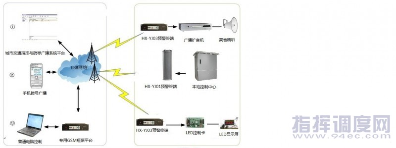 主頁(http://www.130131.com):恒星科通:城市交通指揮與應急疏導廣播系統(tǒng)方案 一、系統(tǒng)概述城市交通指揮與疏導廣播即“GSM 無線智能廣播”,是利用 GSM 無線接入設備與擴音廣播系統(tǒng)組合形成的一款 GSM 無線智能廣播系統(tǒng),該系統(tǒng)用在交通指揮與疏導等智能交通項目有不可替代的優(yōu)勢。系統(tǒng)中設計一套中心服務器,該服務器可以定時、定點打開(關閉)終端設備并進行相應操作。系統(tǒng)終端為GSM通信的預警終端,該終端除了接收中心服務器發(fā)來的預警信息,還可以接收本地控制主機的預警與控制指令,優(yōu)先級可設置,一般設置為本地優(yōu)先。 二、系統(tǒng)設計原則 城市交通指揮與疏導廣播系統(tǒng)設計遵循“先進科學、穩(wěn)定可靠、方便擴展、經濟適用、安全保密”的原則,并綜合考慮施工、維護等重要因素,同時也為今后的發(fā)展、擴建、改造等留有余地。本系統(tǒng)設計內容是系統(tǒng)的、完整的、全面的,設計方案具有科學性、合理性、實用性。 2.1 先進科學性: 充分利用 INTERNET、蜂窩網絡帶寬傳輸、UTP/Gn 接入、嵌入式文語轉換、LED 顯示控制等先進技術設計,采用目前先進的系統(tǒng)軟件平臺及終端設備 2.2 穩(wěn)定可靠性: 由于城市交通指揮與疏導廣播系統(tǒng)使用環(huán)境的特殊性和重要性,必須保證系統(tǒng)工作相對穩(wěn)定可靠。一是中心系統(tǒng)的可靠性,選用穩(wěn)定可靠的 WINDOWSXP 和工控機作為城市交通指揮與疏導廣播系統(tǒng)平臺載體,該廣播平臺具有權限操作功能,從應用上保證了系統(tǒng)的可靠運行發(fā)布;二是國內優(yōu)質的 LED 控制卡和顯示屏硬件故障率低,嵌入式文語模塊支持多種文字、字符等實時轉為語音,擴音機等外設電源采用干觸點控制,都保證了終端顯示和播報的可靠性。三是通信機制可靠,系統(tǒng)傳輸采用具有大面積穩(wěn)定覆蓋的無線移動通信網絡,數據傳輸高效可靠性不容置疑。 2.3 方便擴展性: 目前城市交通指揮與疏導廣播系統(tǒng)能夠支持現有的各類無線通信接入,CDMA 通信系統(tǒng)、GSM通信系統(tǒng)、GPRS 通信系統(tǒng),并實現了這些系統(tǒng)的并網運行,今后通過開發(fā)和安裝相應的通信接口協議即可實現其他未來通信系統(tǒng)的接入。 2.4 經濟實用性: 整個系統(tǒng)的操作以方便、簡潔、高效為目標,既充分體現快速反應的特點,又能便于操作人員進行信息設置、發(fā)布和廣播。] 2.5 安全保密性: 對于系統(tǒng)的管理實行嚴格的權限管理,只有持有一定權限的密鑰才能訪問、監(jiān)控、管理、操作,確保系統(tǒng)使用安全可靠,杜絕不法分子非法盜用平臺宣傳。 三、城市交通指揮與疏導廣播系統(tǒng)功能特點 3.1廣播系統(tǒng)功能 文語轉換:支持指揮與疏導等信息文字轉語音廣播輸出。 LED 顯示:支持指揮與疏導等信息文字轉 LED 顯示。 定時播報:支持指揮與疏導等信息定時自動語音播報和 LED 顯示。 緊急播報:支持手動發(fā)送信息緊急自動語音播報和 LED 顯示。 播報設置:支持語音男/女聲選擇,音調和語速可按需設置。 顯示設置:支持 LED 顯示文字滾動速度設置。 次數設置:支持語音播報、LED 顯示信息次數設置。 身份鑒別:支持信息發(fā)送者身份鎖定和鑒別,非法信息不予接收和播報。 狀態(tài)監(jiān)測:支持發(fā)送狀態(tài)實時監(jiān)測,信息發(fā)送成功與否軟件有明確提示。 外設控制:支持擴音機電源自動控制功能。 多元文本:支持 GB2312、GBK、BIG5、UNICODE 四種內碼格式文本。 3.2 指揮與疏導廣播系統(tǒng)特點 廣域覆蓋:無線移動網絡在全國 31 個省的城市和農村均有良好覆蓋,基本上在手機可以打電話的地方都可傳輸氣象災害預警廣播。 永遠在線:系統(tǒng)只要激活無線預警廣播應用后,將一直保持在線,類似于無線專線網絡服務。 按量計費:無線專線網絡服務雖然保持一直在線,但只有產生通信流量時才計費,費用低廉。 高速傳輸:采用蜂窩網絡帶寬傳輸,可支持 53.6Kbps 的峰值傳輸速率,傳輸速率高,傳輸速度快。 實時發(fā)布:隨時發(fā)布和接收信息,且可以定時或立即顯示和播報。 擴展無限:在全國范圍內,只要無線 GPRS 網絡覆蓋的地方都可以使用,不受距離和位置的限制。 安裝方便:只要有無線移動網絡,指揮與疏導廣播終端接通電源即可。 四、指揮與疏導廣播組成 4.1 指揮與疏導廣播發(fā)布平臺 在市交管局建立指揮與疏導廣播發(fā)布平臺,定時/手動發(fā)布所轄范圍各類交通指揮與疏導等綜合信息,并通過無線移動網絡空中發(fā)送。 4.2 指揮與疏導廣播本地控制中心 在每個交通路口廣播終端前設置本地控制中心,實時采集該預警終端附近各種交通違法違規(guī)行為,并將相應的預警告警信息通過終端廣播出去。 4.2指揮與疏導廣播接收終端 在市區(qū)各主要交通路口設置廣播終端,通過電子顯示屏將發(fā)布信息 LED 文字滾動顯示,并轉換為語音(男聲、女聲可選),通過已有擴音機經大喇叭(高音喇叭)播放出來。該終端還可接收本地控制中心的預警告警信息并廣播出來,優(yōu)先級可根據要求設定,一般設置為本地優(yōu)先。 五、系統(tǒng)原理圖