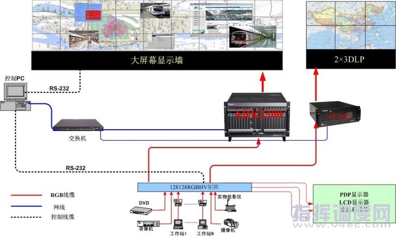 主頁(http://www.130131.com):豪義慧通:電力應(yīng)急運(yùn)營監(jiān)控中心大屏幕系統(tǒng) 建設(shè)目標(biāo)利用高清晰數(shù)字顯示技術(shù)、顯示單元無縫拼接技術(shù)、多屏圖像處理技術(shù)、圖像處理技術(shù)、網(wǎng)絡(luò)技術(shù)等技術(shù)手段,構(gòu)建一個(gè)擁有高亮度、高清晰度、技術(shù)先進(jìn)、功能強(qiáng)大、使用方便的運(yùn)行監(jiān)控中心大屏幕顯示系統(tǒng),精確顯示系統(tǒng)采集的多種電力線路、變電站運(yùn)作狀況、實(shí)時(shí)信息數(shù)據(jù)、設(shè)備位置信息、電網(wǎng)地理分布以及對各種信息統(tǒng)計(jì)、查詢、圖形管理等功能的直觀顯示,工作人員可以通過大屏幕的顯示對電力系統(tǒng)的運(yùn)行狀態(tài)進(jìn)行分析,隨時(shí)了解和掌握電力系統(tǒng)的運(yùn)行狀態(tài),起到預(yù)警預(yù)報(bào)、突發(fā)事件處置等管理,降低突發(fā)事件造成的損失并快速恢復(fù)電網(wǎng)運(yùn)行,提高電網(wǎng)企業(yè)形象和承擔(dān)社會責(zé)任的能力。 解決方案 根據(jù)運(yùn)行監(jiān)控中心場所的要求,設(shè)計(jì)采用46寸超窄邊液晶拼接單元為主要顯示單元,設(shè)計(jì)為4行22列共88塊屏幕組成的拼接墻。 整個(gè)大屏幕拼接墻系統(tǒng)主要由以下主要部分構(gòu)成: 1、4×22液晶拼接單元1套; 2、Ark3300多屏處理器系統(tǒng)1套; 3、顯示單元底座 4、顯示墻應(yīng)用管理軟件 5、線纜及輔助設(shè)備 本系統(tǒng)中整套系統(tǒng)以弧形拼接的方式搭建,拼接角度為8.0°。液晶拼接墻充分考慮散熱、后期維護(hù)及墻體承重等因素設(shè)計(jì)為支架式安裝。 系統(tǒng)拓?fù)鋱D ![]() 圖:系統(tǒng)結(jié)構(gòu)圖 應(yīng)用模式 大屏幕系統(tǒng)由4行22列液晶拼接屏組織,建成后可以不同部門、不同模式的應(yīng)用,包括信息運(yùn)行監(jiān)控、營銷稽查監(jiān)控、視頻會議召開、展示模式以及靈活組合的方式。(一)信息運(yùn)行監(jiān)控功能 信息運(yùn)行監(jiān)控模式可將液晶屏幕在功能上分解為主屏、側(cè)屏和環(huán)屏,用于顯示以下內(nèi)容: 1、主屏、側(cè)屏和環(huán)屏的展示內(nèi)容分別為:主屏顯示網(wǎng)絡(luò)監(jiān)控、應(yīng)用監(jiān)控、運(yùn)行監(jiān)控和經(jīng)營實(shí)況;側(cè)屏顯示桌面終端安全情況和動環(huán)系統(tǒng);環(huán)屏顯示各系統(tǒng)的實(shí)時(shí)運(yùn)行情況,及各系統(tǒng)的運(yùn)行指標(biāo)。 2、主屏、側(cè)屏和環(huán)評的顯示內(nèi)容要求輪流顯示,定時(shí)切換。 3、此種監(jiān)控功能完全能夠滿足運(yùn)行由甲方提供的專業(yè)的可視化平臺軟件,來展示上述內(nèi)容。 。ǘI銷稽查監(jiān)控(或按甲方需求顯示其他業(yè)務(wù)系統(tǒng)的監(jiān)控情況) 可以考慮將液晶拼接屏(顯示面積不小于12平方米)、dlp屏和等離子屏都應(yīng)用于營銷稽查的顯示過程中,主要展示內(nèi)容來自PC機(jī)上的圖形、圖像顯示。 。ㄈ┮曨l會議模式 用戶在與各個(gè)部門單位召開視頻會議時(shí),液晶拼接屏或DLP屏均能根據(jù)會議的需求,靈活實(shí)現(xiàn)對視頻會議現(xiàn)場的圖像采集和顯示 。ㄋ模┱故灸J剑 在各級領(lǐng)導(dǎo)參觀、慰問、視察等情況時(shí),可以考慮液晶拼接屏,dlp屏、等離子和通電玻璃的整體展示效果,在播放高清視頻宣傳片的同時(shí),也可實(shí)現(xiàn)其他計(jì)算機(jī)信號的靈活顯示(含液晶屏、DLP屏、等離子屏和通電玻璃)。 (五)靈活組合展示 此種接入模式是將上述模式中部分或全部內(nèi)容在不同的屏幕區(qū)域內(nèi)進(jìn)行混合,分別在液晶屏、dlp屏,等離子屏、通電玻璃上進(jìn)行顯示。 四大系統(tǒng)優(yōu)勢 1、國內(nèi)首套超大拼接顯示屏 開創(chuàng)了國內(nèi)首套88塊超大規(guī)模的46寸拼接顯示系統(tǒng)。 2、系統(tǒng)整體匹配,穩(wěn)定性能高 整個(gè)系統(tǒng)中的產(chǎn)品全部采用同一廠家的產(chǎn)品,包括LCD顯示單元、Digicom多屏處理器和顯示墻應(yīng)用管理系統(tǒng)(VWAS)軟件等等。系統(tǒng)整體匹配,穩(wěn)定性能高,日后不會產(chǎn)生因多家產(chǎn)品造成的未來不可預(yù)見的技術(shù)銜接和軟件升級等問題,也不會產(chǎn)生一系列諸如系統(tǒng)匹配性、穩(wěn)定性、質(zhì)量和售后服務(wù)扯皮糾紛等等問題。 3、優(yōu)越的系統(tǒng)可靠性以及惡劣環(huán)境抗御能力性能 拼接顯示墻具有抗8級地震能力,能承受一定程度的環(huán)境交變熱濕沖擊。系統(tǒng)的可靠性以及惡劣環(huán)境抗御能力性能優(yōu)越。 4、質(zhì)量保證 自設(shè)備交貨現(xiàn)場驗(yàn)收之日起3年的免費(fèi)保修服務(wù)及保修期后的終身優(yōu)惠服務(wù),在質(zhì)量保證期內(nèi),屬于保修范圍的質(zhì)量問題,免費(fèi)維修服務(wù)和免費(fèi)更換產(chǎn)品。 (中國集群通信網(wǎng) | 責(zé)任編輯:陳曉亮) |