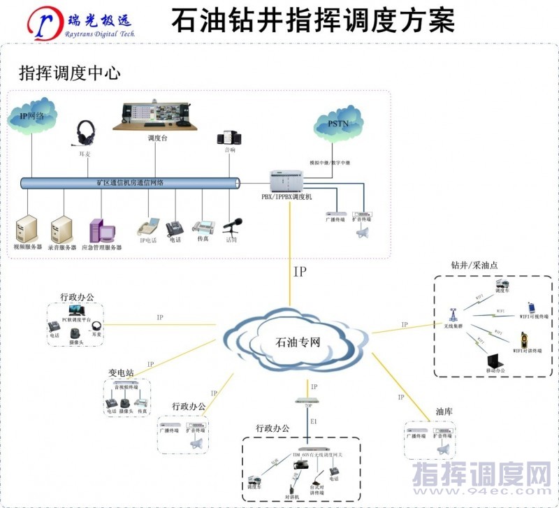 主頁(http://www.130131.com):瑞光數碼:石油鉆井企業(yè)音視頻指揮調度系統(tǒng) 1 需求分析目前市場上的指揮調度系統(tǒng)仍以數字程控交換技術為主,一般建立在固定電話網(PSTN)上:此方式受制于線路,缺乏靈活性,由于線路的故障極易造成調度的失效;受制至于底層傳輸網絡,新的應用擴展尤其是數據、音頻、視頻的融合應用無法實現。隨著通信技術日新月異地發(fā)展及IP 網絡向世界各個角落的延伸,IP 通信技術已經成為通信技術的主流,IP 網絡作為基礎的通信架構也必然成為未來的發(fā)展方向。Everything Over IP 已經成為未來通信網絡的必然趨勢。 “石油鉆井企業(yè)音視頻指揮調度系統(tǒng)”是北京瑞光極遠公司順應技術發(fā)展之需要,與石油部門緊密合作,面向石油行業(yè)推出的采用最先進的IP音視頻指揮調度系統(tǒng)。系統(tǒng)采用NGN(下一代)網絡架構,利用軟交換技術完全構建于IP 網絡之上符合國際通信行業(yè)標準。系統(tǒng)具有良好的結構和互連性,可以與現有的移動公眾通信網絡、固定電話網絡、專業(yè)集群通信網絡(150M/350M/450M/800M)等相關網絡有機、合理地集合為一體,融合信息發(fā)布、電話會議、調度系統(tǒng)、無線應用及定位管理于同一系統(tǒng)平臺上,集語音、數據、視頻業(yè)務為一體,為用戶提供高效、快捷、方便、靈活、經濟、全面的綜合化信息調度指揮服務,整個系統(tǒng)不受地理位置的限制,可以分布式部署;具有開放的體系結構、標準結構和應用編程接口(API),方便用戶提供特殊的增值業(yè)務,為相關行業(yè)應用一體化信息平臺提供解決方案。 2 方案介紹 音視頻調度指揮最基本的功能,就是監(jiān)視控制和數據收集,以及呼叫處理等,能夠快速準確、方便靈活的將生產調度命令上送下達,提高對于突發(fā)事件的應急情況的解決速度,進一步確保石油供應的安全運行水平。 系統(tǒng)支持分布式部署,適合石油系統(tǒng)單位分散的特點,能夠依托石油專網迅速進行系統(tǒng)部署和節(jié)點擴充。調度室能夠隨時監(jiān)控所有調度終端的通信狀態(tài),并快速下達調度指令;終端部署在各個采油站點及鉆井站點,形成多級互聯、集中管控的專業(yè)調度通信系統(tǒng)。 2.1 方案拓撲 ![]() 中心點放置一臺PBX/IPPBX綜合調度機IDM MSAP-CP和觸摸屏指揮調度臺,調度員通過指揮調度臺來實現對網絡拓撲中任何節(jié)點任何終端的音視頻指揮調度、定位、信息發(fā)布等功能; 對于固定電話和手機,可以通過IDM MSAP-CP的E1數字中繼接口或者FXO模擬中繼接口出局調度;對于安裝FXS口的設備、IP話機和軟電話,可以直接調度;對于E&M接口的PBX下的分機,可以通過瑞光極遠的IDM 60N有無線調度網關實現調度;對于用FXO口配合PBX的使用,通地IDM MSAP-CP的PBX調度盤實現調度;對于模擬集群和數字集群系統(tǒng),可以通過IDM 60N有無線調度網關和電臺E&M接口連接轉換實現調度。 (中國集群通信網 | 責任編輯:陳曉亮) |