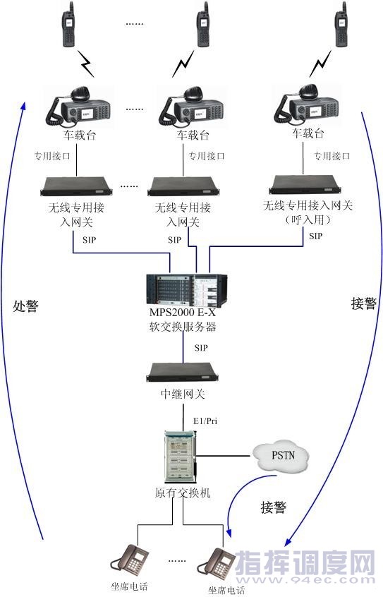 主頁(http://www.130131.com):邁可行:上海120應(yīng)急系統(tǒng)無線集群接入方案 1.1 項(xiàng)目概況上海120應(yīng)急指揮系統(tǒng)需要建設(shè)集有線調(diào)度、無線調(diào)度于一體的應(yīng)急指揮系統(tǒng)。 1.2 組網(wǎng)圖 ![]() 120應(yīng)急指揮系統(tǒng)無線集群接入組網(wǎng)圖 軟交換服務(wù)器通過中繼網(wǎng)關(guān)采用數(shù)字中繼和原有的交換機(jī)互聯(lián),實(shí)現(xiàn)基于原有交換機(jī)和PSTN的有線調(diào)度;通過EADS專用接入網(wǎng)關(guān)采用專用接口和EADS車載臺(tái)互聯(lián),實(shí)現(xiàn)基于EADS的無線調(diào)度。中繼網(wǎng)關(guān)、接入網(wǎng)關(guān)實(shí)現(xiàn)電路域和IP域的轉(zhuǎn)換,中繼網(wǎng)關(guān)、接入網(wǎng)關(guān)通過IP和應(yīng)急指揮系統(tǒng)互聯(lián)。軟交換服務(wù)器實(shí)現(xiàn)路由選擇、語音交換、ACD排隊(duì)功能。 1.4 功能說明 1. 呼出 單呼: 每個(gè)對(duì)講機(jī)都有獨(dú)立編號(hào),坐席或別的電話可以通過撥號(hào)呼叫任一對(duì)講機(jī)。(和普通打電話一樣);呼叫時(shí)中繼網(wǎng)關(guān)把呼叫消息送到呼叫控制軟件,由呼叫控制軟件選擇空閑車載臺(tái)進(jìn)行呼叫。 組呼: 每組對(duì)講機(jī)都有事先設(shè)定的組呼號(hào)碼,坐席呼叫組號(hào)時(shí),即可接通整組的通話,對(duì)整組發(fā)布指令。呼叫控制軟件自行區(qū)分組號(hào)和單機(jī)號(hào)碼,坐席呼叫時(shí)可以沒有區(qū)別。 2. 呼入 對(duì)講機(jī)可呼叫指定的車載臺(tái),系統(tǒng)接受到主叫號(hào)碼后即拒絕呼叫,把主叫號(hào)碼寫入軟件系統(tǒng)數(shù)據(jù)庫或由直接向坐席發(fā)出通知,告知坐席呼入的對(duì)講機(jī)主叫號(hào)和呼入時(shí)間。坐席接收到信息后再向該對(duì)講機(jī)發(fā)起呼叫。 (中國集群通信網(wǎng) | 責(zé)任編輯:陳曉亮) |