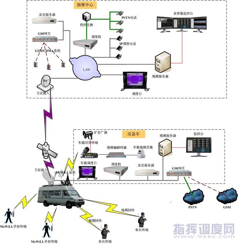 主頁(http://www.130131.com):捷思銳:應(yīng)急車載調(diào)度系統(tǒng)解決方案 一、 概述 隨著社會經(jīng)濟和文化生活的不斷發(fā)展,公眾服務(wù)和公共安全就成為政府部門和各行業(yè)的一個非常重要的工作。提高政府及各行業(yè)對緊急、突發(fā)事件的快速反應(yīng)和抗風(fēng)險的能力,建設(shè)移動指揮系統(tǒng)為公眾提供更快捷的緊急救助服務(wù),已成為社會一個迫切的課題。對重大突發(fā)事件的現(xiàn)場高效指揮調(diào)度處理能力已經(jīng)成為現(xiàn)代化管理程度的重要標志之一。在一些突發(fā)事件發(fā)生時(例如地震、火災(zāi)、洪災(zāi)),公用的通信系統(tǒng)有可能遭到破壞已經(jīng)無法滿足處理緊急事件的要求,ZED-3車載應(yīng)急調(diào)度系統(tǒng)能在緊急情況下快速抵達事發(fā)地點,建立無阻塞的應(yīng)急通信網(wǎng)絡(luò)和快速有效的指揮調(diào)度網(wǎng)絡(luò),保障快速、及時、準確收集到現(xiàn)場信息,為指揮任務(wù)提供實時的決策信息。系統(tǒng)具有快速機動和廣泛通信能力,具備可部署性、高靈敏性、多功能性,對實施現(xiàn)場緊急救援和指揮調(diào)度工作起著不可缺少的重要作用。 Zed-3的車載調(diào)度系統(tǒng),具有功能豐富、接口多樣、系統(tǒng)穩(wěn)定可靠等特點?蓪崿F(xiàn)基于移動的調(diào)度指令下發(fā)、成員狀態(tài)監(jiān)控、各種調(diào)度終端協(xié)同工作等功能,從而滿足移動、快速應(yīng)急通信等需求。且Zed-3的車載調(diào)度系統(tǒng)具有良好的抗震性,非常適用于車輛部署。 二、 方案描述 車載應(yīng)急指揮系統(tǒng)包括視頻監(jiān)控、救援通信、救援指揮、信息處理等一體化綜合系統(tǒng),是一個以計算機通信網(wǎng)絡(luò)為核心的、獨立多媒體綜合信息應(yīng)用系統(tǒng),是采用空中與地面相結(jié)合、有線與無線相結(jié)合、固定與機動相結(jié)合的立體化、快速反應(yīng)的移動寬帶指揮系統(tǒng),其主要實現(xiàn)指揮中心與突發(fā)事故現(xiàn)場之間動態(tài)圖像、語音及數(shù)據(jù)的實時傳送,實現(xiàn)各種業(yè)務(wù)數(shù)據(jù)庫、決策支持數(shù)據(jù)庫等數(shù)據(jù)信息的共享和處理,實現(xiàn)指揮中心對各種資源及救援現(xiàn)的統(tǒng)一指揮和調(diào)度。該系統(tǒng)技術(shù)先進、組網(wǎng)靈活、模塊化升級、實時性好、可靠性高、方便易用。 2.1 系統(tǒng)說明 基于McWiLL的多媒體調(diào)度系統(tǒng)車載解決方案包括指揮中心、McWiLL無線通信、現(xiàn)場應(yīng)急車、單兵可視調(diào)度終端、手持調(diào)度終端等。系統(tǒng)建成后,指揮中心可通過光纖傳輸網(wǎng)、McWiLL無線信道建立與應(yīng)急車的通信信道。指揮調(diào)度系統(tǒng)具備強大的通信交換能力,為指揮中心與各通信車、現(xiàn)場移動單兵設(shè)備、手持設(shè)備之間提供交換連接服務(wù),并可實現(xiàn)與公共電話網(wǎng)之間的連接;應(yīng)急指揮系統(tǒng)還可以實時處理現(xiàn)場傳輸過來的視頻信息,與指揮中心形成統(tǒng)一的指揮平臺。基本框架如下: ![]() 車載應(yīng)急指揮通信系統(tǒng)方案的設(shè)計在無線通信、視頻傳輸、話音通信等方面都采用了當今國際領(lǐng)先的技術(shù)。系統(tǒng)組成及實際應(yīng)用結(jié)構(gòu)圖如下所示: ![]() 二級分布式調(diào)度:指揮中心和應(yīng)急車分別配備獨立的調(diào)度系統(tǒng),調(diào)度機和視頻服務(wù)器可作為主從關(guān)系存在,現(xiàn)場應(yīng)急車中的設(shè)備可以實時將現(xiàn)場數(shù)據(jù)上傳至指揮中心總服務(wù)器,在衛(wèi)星鏈路有壓力或失效的情況下,現(xiàn)場應(yīng)急車調(diào)度系統(tǒng)自成體系,完全可以獨立對現(xiàn)場進行指揮調(diào)度,可通過現(xiàn)場應(yīng)急車的視頻服務(wù)器召開局部視頻會議、對本地視頻信息進行錄像和保存,很大程度減少了衛(wèi)星鏈路壓力。二級分布式調(diào)度系統(tǒng),可協(xié)同工作,可互為備份,可分擔(dān)壓力,是整套系統(tǒng)的優(yōu)勢所在。 (中國集群通信網(wǎng) | 責(zé)任編輯:陳曉亮) |