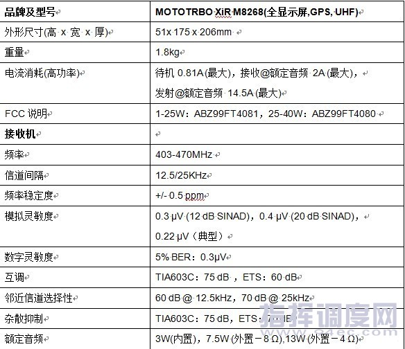 主頁(yè)(http://www.130131.com):武漢市城市管理局無(wú)線通信指揮調(diào)度系統(tǒng)擴(kuò)容建設(shè)方案(5) ![]() ![]() 11.9 數(shù)字常規(guī)手持電臺(tái) MOTOTRBO 的 XiR P8260 數(shù)字常規(guī)手持雙向無(wú)線電臺(tái)可以在許可頻率下,定制用戶化的關(guān)鍵業(yè)務(wù)通信解決方案,是專業(yè)人員的理想選擇。這款手持設(shè)備可提供更清晰的語(yǔ)音通信和更長(zhǎng)的電池壽命,實(shí)現(xiàn)從模擬到數(shù)字的輕松轉(zhuǎn)換。 XiR P8260電臺(tái)的主要特點(diǎn): ? 數(shù)字話音質(zhì)量 ,通過(guò)數(shù)字糾錯(cuò),靜電和噪聲抑制,在更大的范圍內(nèi)提供比模擬無(wú)線電臺(tái)更清晰的話音質(zhì)量; ? 利用 TDMA 技術(shù),在一個(gè)許可頻率,可獲得兩倍的呼叫容量; ? 可以為模擬或數(shù)字運(yùn)行進(jìn)行專門的軟件配置 - 實(shí)現(xiàn)模擬到數(shù)字的平穩(wěn)轉(zhuǎn)換; ? 延長(zhǎng)了電池壽命。與傳統(tǒng)模擬電臺(tái)相比,TDMA 數(shù)字雙向無(wú)線電臺(tái)在兩次充電之間的電池使用時(shí)間最多可高出 40%; ? 集成語(yǔ)音和數(shù)據(jù),既可以提高無(wú)線電臺(tái)的工作效率,又可以為多種應(yīng)用提供支持; ? 三色 LED 可對(duì)呼叫、掃描和監(jiān)控作出清晰指示; ? 電臺(tái)支持多基站漫游,自動(dòng)選擇信號(hào)最優(yōu)的基站提供最優(yōu)通訊效果。 ? 緊急報(bào)警按鍵可在緊急情況下給管理人員或調(diào)度人員發(fā)送報(bào)警; ? 符合 IP57 標(biāo)準(zhǔn) - 水下 1 米處可停留 30 分鐘; ? 可編程的側(cè)面按鍵可輕松訪問(wèn)常用功能; ? 中文菜單界面顯示,友好的圖標(biāo)和兩行文字顯示讓閱讀和操控更加方便。 ![]() ![]() ![]() ![]() 11.10 數(shù)字常規(guī)車載電臺(tái) MOTOTRBO 的 XiR M8268 數(shù)字車載臺(tái)可以在許可頻率下,定制用戶化的關(guān)鍵業(yè)務(wù)通信解決方案,是專業(yè)人員的理想選擇。這款車載設(shè)備可提供更清晰的語(yǔ)音通信,實(shí)現(xiàn)從模擬到數(shù)字的輕松轉(zhuǎn)換。 XiR M8268車載臺(tái)的主要特點(diǎn): ? 數(shù)字話音質(zhì)量 ,通過(guò)數(shù)字糾錯(cuò),靜電和噪聲抑制,在更大的范圍內(nèi)提供比模擬無(wú)線電臺(tái)更清晰的話音質(zhì)量; ? 利用 TDMA 技術(shù),在一個(gè)許可頻率,可獲得兩倍的呼叫容量; ? 可以為模擬或數(shù)字運(yùn)行進(jìn)行專門的軟件配置 - 實(shí)現(xiàn)模擬到數(shù)字的平穩(wěn)轉(zhuǎn)換; ? 集成的 GPS 模塊開拓了新的跟蹤和定位服務(wù)應(yīng)用,同時(shí)提高了安全性; ? 集成語(yǔ)音和數(shù)據(jù),既可以提高無(wú)線電臺(tái)的工作效率,又可以為多種應(yīng)用提供支持; ? 多色 LED 可對(duì)呼叫、掃描和監(jiān)控作出清晰指示; ? 電臺(tái)支持多基站漫游,自動(dòng)選擇信號(hào)最優(yōu)的基站提供最優(yōu)通訊效果,也可以選擇普通型無(wú)漫游功能,以適應(yīng)不同的應(yīng)用場(chǎng)合。 ? 緊急報(bào)警按鍵可在緊急情況下給管理人員或調(diào)度人員發(fā)送報(bào)警; ? 配件連接器支持 USB 和更強(qiáng)大的音頻功能; ? 可編程的側(cè)面按鍵可輕松訪問(wèn)一鍵撥號(hào)等常用功能; ? 中文菜單界面顯示方便閱讀和操控。 ![]() ![]() ![]() ![]() ![]() ![]() ![]() ![]() ![]() ![]() (本站原創(chuàng),廠商供稿。未經(jīng)授權(quán)不得轉(zhuǎn)載,轉(zhuǎn)載敬請(qǐng)注明來(lái)源:“中國(guó)集群通信網(wǎng) www.130131.com ”,如需轉(zhuǎn)載,請(qǐng)注明來(lái)源和作者,謝謝合作。 (中國(guó)集群通信網(wǎng) | 責(zé)任編輯:陳曉亮) |