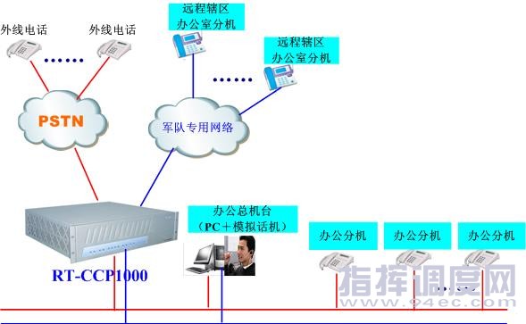 主頁(http://www.130131.com):融天科技:某政府部門多媒體調(diào)度指揮系統(tǒng) 一、項目背景某政府部門為了進一步提高辦公效率,加強對各種演習(xí)、演練的控制,需要部署一套先進的多媒體調(diào)度指揮系統(tǒng)實現(xiàn)對突發(fā)狀況進行統(tǒng)一指揮、統(tǒng)一調(diào)度、對多部門統(tǒng)一協(xié)調(diào),以便幫助某政府部門高效的開展管理工作,融天科技采用自主研發(fā)的融合通信平臺RT-CCP1000,憑借豐富的經(jīng)驗和多年調(diào)度指揮技術(shù)優(yōu)勢,以硬件平臺簡單、功能先進實用、應(yīng)用組網(wǎng)靈活、維護擴容方便等眾多優(yōu)勢中標(biāo)該項目。 二、項目介紹 本次項目涉及包括某政府部門總部調(diào)度室、14個內(nèi)部辦公室以及分布在市各轄區(qū)的21個遠程辦公室。根據(jù)以上情況,融天科技在某政府部門機房部署RT-CCP1000設(shè)備1臺,與本地的PSTN采用模擬中繼方式連接,作為系統(tǒng)與外線的出入口,14個內(nèi)部辦公室統(tǒng)一部署模擬電話,轄區(qū)的21個遠程武裝部辦公室統(tǒng)一部署IP電話,并借助于某政府部門現(xiàn)有的數(shù)據(jù)專網(wǎng)非常輕松的實現(xiàn)了IP調(diào)度、IP用戶的接入功能,將調(diào)度指揮功能不受限制的滲透到某政府部門遠端的每個武裝部執(zhí)勤點。各調(diào)度室統(tǒng)一采用先進的軟調(diào)度鍵盤方式,可通過內(nèi)部的數(shù)據(jù)專網(wǎng)內(nèi)的任何電腦,以WEB方式隨時隨地啟動軟調(diào)度指揮臺實現(xiàn)調(diào)度指揮功能。 該項目上線以來,已經(jīng)參加了由當(dāng)?shù)卣安筷牻M織的“奧運安全保障”、“國民安全動員網(wǎng)上演練”、“重大災(zāi)難應(yīng)急指揮演習(xí)”等多項大規(guī)模的演練、演習(xí)。另外,融天科技充分地考慮到了該項目后續(xù)的可擴展性和發(fā)展趨勢,還為其預(yù)留無線接入接口,可非常方便的實現(xiàn)對無線WIFI手機終端的調(diào)度指揮,還可以利用衛(wèi)星通信將調(diào)度指揮室通過應(yīng)急通信車延伸到遠端事故現(xiàn)場。 1、 辦公使用 ![]()