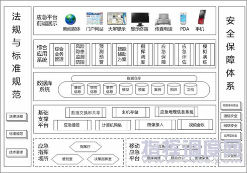 主頁(http://www.130131.com):哈里斯通信:政府應急指揮系統 政府應急平臺以政務專網系統為支撐、以應急指揮中心為核心、以各級人民政府和各專業(yè)指揮部為分中心,通過對轄區(qū)內已建的和在建的語音、數據、視頻等信息資源的有效整合、實現上下級應急平臺的互聯互通,建立多級聯動的指揮體系,逐步建設覆蓋到省、市、區(qū)縣等的面向公眾的緊急信息接報平臺、信息發(fā)布平臺和應急指揮平臺,增強政府對重大突發(fā)事件的應急指揮能力。系統組成 應急平臺的系統建設由基礎支撐平臺、數據庫系統、綜合應用系統、安全保障系統、應急標準規(guī)范、應急指揮場所、移動應急平臺構成,系統組成如下圖所示。 ![]() 系統功能 1、基礎支撐系統 基礎支撐系統為應急平臺的正常運行提供基礎保障,主要包括應急通信系統、計算機網絡系統、圖像接入系統、視頻會議系統、主機存儲系統、數據交換與共享系統及應急地理信息系統等。 1.1 應急通信系統 應急通信系統主要用于支持市各級應急平臺管理日常工作聯絡、突發(fā)事件應急處置時話音、數據、視頻等業(yè)務的傳送需要,主要包含指揮調度系統、無線通信系統等。 1.2 計算機網絡系統 計算機網絡系統主要用于內、外網應用系統的承載和數據交換的承載,主要包含相應的廣域網接入和局域網網絡設備。 1.3 視頻會議系統 視頻會議系統主要用于在重大突發(fā)公共事件發(fā)生時各級應急平臺之間的協調溝通,會議會商。視頻會議系統主要由MCU、視頻會議終端、視頻會議服務器等組成。 1.4 圖像接入系統 圖像接入系統主要用于接收下級應急平臺和移動應急平臺圖像信號的接入。圖像接入系統依托有關部門現有圖像監(jiān)控系統,采用數字方式,由各部門應急平臺負責將本系統的圖像轉換后上傳,圖像接入系統主要由圖像接入服務器、編解碼器等組成。 1.5 主機存儲系統 通過主機存儲系統,實現應急平臺服務器與存儲系統的完整配置,建立應急平臺各項業(yè)務應用系統的運行服務器環(huán)境,建立應急平臺各類系統、各類數據的數據存儲與備份環(huán)境。主要包含各類應用和數據庫服務器、磁盤陣列、光纖交換機、存儲管理軟件等設備。 1.6 數據交換與共享系統 市應急平臺數據交換與共享系統是市應急平臺管理應急信息資源目錄、支撐應急信息資源共享交換的基礎系統。 市應急平臺數據交換與共享系統由市應急平臺負責管理,并在有關部門和區(qū)縣應急平臺設置共享交換節(jié)點。 1.7 應急地理信息系統 應急地理信息系統提供對應急基礎數據的可視化表現,直觀地反映了突發(fā)事件周邊的地形地貌、保護目標和危險源以及救援隊伍的分布,便于領導在應急中掌握事發(fā)態(tài)勢,優(yōu)化資源配置,制定救援方案。 2、應急指揮場所 指揮場所是由一系列獨立的視、音頻系統,以及對它們進行控制的集中控制系統和場所保障環(huán)境組成的安全的、智能化應急指揮環(huán)境,包括顯示系統、會議系統、擴聲系統、集中控制、智能燈光照明、綜合布線、供電系統等系統。從功能區(qū)域上,應急指揮場所可劃分為應急指揮廳、值班室、會商室等場所區(qū)域。 應急指揮場總體設計上采用以集中控制為中心的網絡化多媒體指揮環(huán)境的整體設計思想,通過綜合布線設連接指揮大廳、應急值班室、會商室等相關的指揮場所,通過對各種音視頻信號的集中交換與處理,并對投影、矩陣、功放等多媒體設備進行必要的集成,實現本地、遠程分散/集中的應急指揮應用對音視頻的需要,從而達到實現網絡化、一體化管理,智能化應急指揮環(huán)境的整體目標。 3、綜合應用系統 綜合應用系統是應急平臺的核心和靈魂,提供強大的應急業(yè)務管理和應急智能決策能力,主要包 括綜合業(yè)務管理系統、風險隱患監(jiān)測防控系統、預測預警系統、智能輔助方案系統、指揮調度系統、應急保障系統、應急評估系統、模擬演練系統等。 4、數據庫系統 數據庫系統采用集中式和分布式兩種存儲方式,常用基礎數據和區(qū)縣、部門的部分關鍵數據存儲于應急平臺的中心數據庫中,其它數據分布式存儲于相關單位數據庫中。應急平臺中心數據庫主要包括基礎信息數據庫、空間信息數據庫、事件信息數據庫、預案庫、案例庫、模型庫、知識庫和文檔庫等。 5、安全保障系統 安全保障系統根據國家安全域劃分的相關要求,實現應急平臺通信、網絡、應用等多層次的整體安全,主要包含物理場所安全、通信安全、網絡安全、應用安全、狀態(tài)監(jiān)控、容災備份、安全管理等。 6、應急平臺標準規(guī)范 本項目將主要依據國家電子政務標準化體系、《國家應急平臺體系技術要求》、《應急信息資源報送交換協議》等國家有關技術標準,結合玉溪市實際情況,制定玉溪市應急平臺建設的標準體系,并在此體系指導下開展市應急平臺建設工作。 7、移動應急平臺 移動應急平臺滿足現場應急通信、現場會商、指揮調度、移動辦公、現場圖像視頻采集等功能,主要通過衛(wèi)星、公眾通信網等通信手段與相關應急平臺以及有關方面進行聯通。 (本站原創(chuàng),廠商供稿。未經授權不得轉載,轉載敬請注明來源:“中國集群通信網 www.130131.com ”,如需轉載,請注明來源和作者,謝謝合作。 (