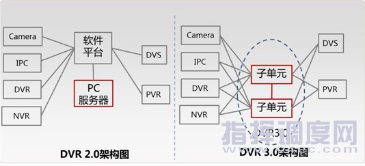 網(wǎng)狀系統(tǒng) 在監(jiān)舍、車間、辦公區(qū)區(qū)域前端采用700線路模擬攝像機,后端采用大華DVR3.0系統(tǒng)進行編碼、存儲、控制。相比較傳統(tǒng)DVR2.0為星型架構(gòu),后端業(yè)務(wù)的開展,實時監(jiān)控、錄像調(diào)取依賴軟件平臺與服務(wù)器,一旦服務(wù)器和平臺出問題,則導(dǎo)致系統(tǒng)無法使用。 本方案中DVR 3.0不是單臺設(shè)備而是設(shè)備族,將軟件平臺的相關(guān)業(yè)務(wù)組件通過嵌入式平臺植入設(shè)備中,使原有設(shè)備從單點網(wǎng)絡(luò)設(shè)備升級為網(wǎng)絡(luò)節(jié)點設(shè)備,從而實現(xiàn)分布式自主管理自完備系統(tǒng),DVR3.0是一個嵌入式系統(tǒng)平臺解決方案
