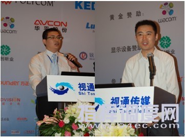 會(huì)議論壇現(xiàn)場圖 會(huì)上,首先由《中國多媒體通信》雜志社社長王宇先生致歡迎辭;工信部電信研究院總工程師蔣林濤和中國音像協(xié)會(huì)音視頻工程專業(yè)委員會(huì)理事長隋春立作致辭;GARTHER、POLYCOM寶利通、中國聯(lián)通研究院、中國移動(dòng)研究院研究所分別闡述了多媒體通信市場發(fā)展趨勢、視頻通信應(yīng)用趨勢以及云計(jì)算2012年的發(fā)展趨勢和移動(dòng)多媒體在行業(yè)應(yīng)用中的前景展望;工業(yè)和信息化部電信研究院通信標(biāo)準(zhǔn)研究所向大家介紹了H.265編碼視頻質(zhì)量評價(jià)及應(yīng)用前景;蘇州科達(dá)科技有限公司、捷揚(yáng)光電產(chǎn)品(上海)有限公司、深圳市捷視飛通科技有限公司、和冠科技(北京)有限公司、威泰視訊設(shè)備(中國)有限公司、北京力創(chuàng)昕業(yè)科技發(fā)展有限公司、深圳迪威和訊科技有限公司和中視迪威激光顯示科技有限公司向大家介紹了公司最新的產(chǎn)品和應(yīng)用。此外,中信建投證券股份有限公司和中國電子科技集團(tuán)公司第三研究所闡述了多媒體視訊業(yè)與資本市場的結(jié)合和視頻通信會(huì)場系統(tǒng)和多媒體會(huì)議室整體發(fā)展,會(huì)場反應(yīng)熱烈。 徐祖哲致辭 隋春立致辭 付紅星演講 本屆展會(huì)得到了白金贊助商:PLOYCOM寶利通公司和蘇州科達(dá)科技有限公司;黃金贊助商:和冠科技(北京)有限公司、華平信息技術(shù)股份有限公司、捷揚(yáng)光電產(chǎn)品(上海)有限公司、捷視飛通科技有限公司、LifeSize、深圳市迪威視訊股份有限公司的大力支持。