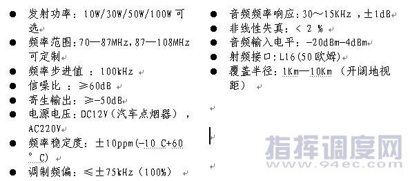主頁(http://www.130131.com):恒星科通推出HX-2000S車載調(diào)頻發(fā)射機 HX-2000系列車載調(diào)頻發(fā)射機是北京恒星科通科技發(fā)展有限公司自主研發(fā)生產(chǎn)的移動式調(diào)頻廣播發(fā)射設(shè)備,本設(shè)備采用專業(yè)I2C調(diào)頻芯片、PLL微電腦鎖相技術(shù)、DSP數(shù)字音頻處理技術(shù)、寬帶射頻放大技術(shù)等先進(jìn)技術(shù)。本產(chǎn)品是針對突發(fā)事件應(yīng)急指揮、自然災(zāi)害應(yīng)急救援、車隊導(dǎo)游導(dǎo)覽解說、市縣級電臺現(xiàn)場直播而開發(fā)的專業(yè)無線調(diào)頻廣播發(fā)射設(shè)備。HX-2000S車載調(diào)頻發(fā)射機安裝在各種車輛上使用,采用吸盤天線發(fā)射,完全滿足移動發(fā)射的要求,在無遮擋環(huán)境(視距)下可發(fā)射半徑輸1-3公里,可以將MP3音樂文件、解說詞發(fā)射出去,也可使用本地話筒進(jìn)行現(xiàn)場喊話,用于現(xiàn)場指揮,無需增加專業(yè)接收設(shè)備,采用車載收音機即可收聽,是一套結(jié)構(gòu)簡單、使用方便、性能穩(wěn)定的無線音頻傳輸與應(yīng)急指揮系統(tǒng)。 一、車載調(diào)頻發(fā)射機的主要用途: ? 政府機構(gòu)參觀考察團(tuán)解說詞播放 ? 自然災(zāi)害應(yīng)急求援指揮 ? 交通事故應(yīng)揮救援急指與疏散 ? 森林防火應(yīng)急指揮 ? 突發(fā)事件現(xiàn)場應(yīng)急指揮 ? 旅游車隊導(dǎo)游詞、解說詞播放 ? 自駕游車隊指揮與聯(lián)絡(luò) ? 露天電影院音頻發(fā)射 二、車載調(diào)頻發(fā)射機的產(chǎn)品系類 我公司根據(jù)不同的客戶需求,開發(fā)出HX-2000SⅠ便攜式(防水箱)車載調(diào)頻發(fā)射機、HX-2000SⅡ機架式車載調(diào)頻發(fā)射機、HX-2000SⅢ組合式車載調(diào)頻發(fā)射機多種規(guī)格,以上幾種規(guī)格的發(fā)射機均采用交流220V或直流12V雙模式供電,滿足固定場所使用或車載移動發(fā)射。 1、 HX-2000SⅠ便攜式(防水箱)車載調(diào)頻發(fā)射機 HX-2000SⅠ便攜式車載調(diào)頻發(fā)射機采用ABS工程塑料密封箱,將調(diào)頻調(diào)制單元、功放單元內(nèi)置到一個便攜式手提箱內(nèi),該設(shè)備具有很好的防水性,可在下雨天氣搬移運輸,特備適合山洪災(zāi)害預(yù)警、地震災(zāi)害災(zāi)后零臨時廣播系統(tǒng)的恢復(fù),采用多模式可以直接從汽車點煙器插座取電,也可以外掛蓄電池或采用太陽能供電,快速搭建現(xiàn)場臨時應(yīng)急廣播系統(tǒng)。 ![]() 整機外觀 ![]() 折疊后手提實際效果 2、 HX-2000SⅡ機架式車載調(diào)頻發(fā)射機 HX-2000SⅡ便攜式車載調(diào)頻發(fā)射機采用19〞標(biāo)準(zhǔn)機架機箱,采用AC220V/DC12V雙模式供電,設(shè)備既可以作為便攜式發(fā)射設(shè)備使用,也可用車載機柜機架式安裝,本設(shè)備具有輸出功率顯示,音頻頻偏柱狀電平表顯示,2組線路輸入,1組話筒輸入接口,并具有天線開路保護(hù)、駐波保護(hù)、功放超溫保護(hù)等功能。 ![]() 機箱采用優(yōu)質(zhì)航空工程機箱,全固化防震結(jié)構(gòu),前后面板可快速拆裝,適合汽車、航空運輸,配備1臺HX-2000調(diào)頻廣播發(fā)射機、1臺效果器、1臺無線話筒等周邊器材組成。也可以根據(jù)客戶要求定制配置。 可采用本地話筒輸入,也可采用無線話筒輸入,便于指揮者在半徑100米內(nèi)移動指揮。 ![]() ![]() ? 內(nèi)蒙古濕地公園車載影院 ? 貴州車載影院 ? 格里芬車載影院 ? 北京昌區(qū)政府接待辦 ? 河北內(nèi)丘縣委接待辦 ? 北京武警總隊通訊處 ? 大慶移動通訊公司 ? 山東沂南縣廣播電臺 ? 河北彰武縣廣播電臺 ? 內(nèi)蒙古翁牛特旗廣播電視中心 ![]() (中國集群通信網(wǎng) | 責(zé)任編輯:陳曉亮) |