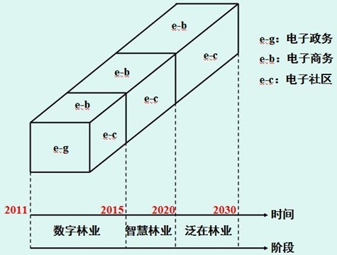 第三階段:泛在林業(yè)建設(shè)階段(2021—2030年)。本階段以深化信息化與林業(yè)現(xiàn)代化的高度融合,全面提高林業(yè)的生態(tài)、經(jīng)濟(jì)、社會服務(wù)功能為主線,通過大力加強(qiáng)信息基礎(chǔ)設(shè)施建設(shè)和信息技術(shù)應(yīng)用,建設(shè)具有中國特色的“泛在林業(yè)”,讓廣大林區(qū)實現(xiàn)在任何時間、任何地點、任何人、任何物都能順暢地通信,人們在林區(qū)可以高效地工作、方便地學(xué)習(xí)和快樂地生活。