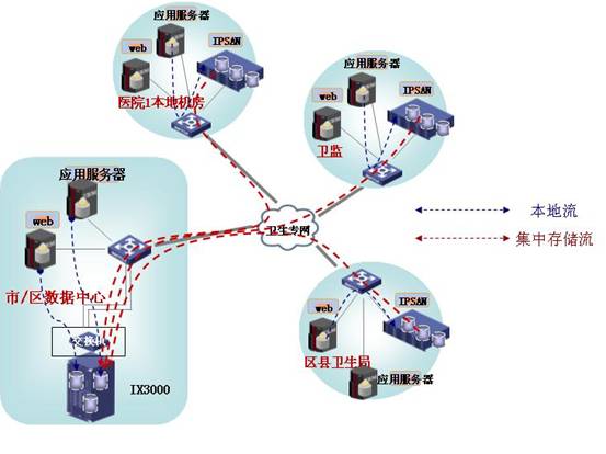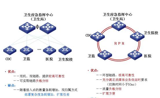主頁(http://www.130131.com):衛(wèi)生應(yīng)急平臺建設(shè)中的信息技術(shù)應(yīng)用(2) 2. 應(yīng)急網(wǎng)絡(luò)承載 應(yīng)急網(wǎng)絡(luò)是所有應(yīng)急業(yè)務(wù)的基礎(chǔ),其性能、可靠性、QoS特點(diǎn)都直接決定了網(wǎng)絡(luò)上所能夠承載的業(yè)務(wù)的數(shù)量、種類和穩(wěn)定性。以市衛(wèi)生應(yīng)急平臺網(wǎng)絡(luò)為例,網(wǎng)絡(luò)整體架構(gòu)上主要有兩種方式可以選擇,傳統(tǒng)的星型架構(gòu)和高可靠高性能的環(huán)網(wǎng)架構(gòu),不同方式各自具有不同的特點(diǎn)(如圖2所示)。 ![]() 圖2 應(yīng)急網(wǎng)絡(luò)拓?fù)溥x擇 應(yīng)急網(wǎng)絡(luò)重點(diǎn)的特性要求分析如下: l 性能 由于我國的應(yīng)急業(yè)務(wù)多由政府行業(yè)承擔(dān),而各個(gè)政府行業(yè)都曾經(jīng)進(jìn)行過電子政務(wù)網(wǎng)絡(luò)的建設(shè),因此在進(jìn)行應(yīng)急網(wǎng)絡(luò)建設(shè)的時(shí)候經(jīng)常會(huì)出現(xiàn)依托電子政務(wù)網(wǎng)進(jìn)行建設(shè)的情況。而電子政務(wù)本身主要滿足政務(wù)業(yè)務(wù)使用,帶寬相對較小,對于一些對帶寬要求較高的業(yè)務(wù)就顯得帶寬相對不足。因此在進(jìn)行應(yīng)急網(wǎng)絡(luò)的建設(shè)過程中,建議采用專網(wǎng)的方式進(jìn)行建設(shè),帶寬上要滿足所有應(yīng)急業(yè)務(wù)的并發(fā)要求。同時(shí),應(yīng)急業(yè)務(wù)的特點(diǎn)是平時(shí)流量較小,突發(fā)事件時(shí)突發(fā)流量很大,因此應(yīng)急網(wǎng)絡(luò)需要具有足夠的帶寬彈性,以便滿足突發(fā)流量的要求,避免出現(xiàn)擁塞。 l 可靠性 作為承載應(yīng)急業(yè)務(wù)的應(yīng)急網(wǎng)絡(luò),其本身必須需要具備高度的可靠性。應(yīng)急網(wǎng)絡(luò)目前的主要形式還是以有線網(wǎng)絡(luò)為主,因此在網(wǎng)絡(luò)架構(gòu)上就必須進(jìn)行特殊考慮滿足高度可靠性的要求。例如,不能存在單點(diǎn)故障、遇到斷點(diǎn)有冗余路徑、恢復(fù)時(shí)間到達(dá)毫秒級等,根據(jù)上述要求,一般推薦在應(yīng)急網(wǎng)絡(luò)的架構(gòu)上采用環(huán)網(wǎng)的結(jié)構(gòu),同時(shí)配備相應(yīng)設(shè)備,支持快速鏈路恢復(fù)等多種特性。 除此之外,在網(wǎng)絡(luò)形式上,也需要具備多種備用方案,以滿足不同的應(yīng)急環(huán)境需要。有線網(wǎng)絡(luò)作為主要的承載網(wǎng)絡(luò),需要延伸到各相關(guān)單位:對于布線成本較高的基層單位,如區(qū)縣和偏遠(yuǎn)山區(qū),可以采用運(yùn)營商3G網(wǎng)絡(luò)作為補(bǔ)充;為避免地震等地質(zhì)災(zāi)害對網(wǎng)絡(luò)的破壞,還需要配備衛(wèi)星設(shè)備,以便快速搭建衛(wèi)星通信信道;在突發(fā)事件處置現(xiàn)場則可以采用WIFI如802.11n技術(shù)進(jìn)行區(qū)域覆蓋,滿足現(xiàn)場接入要求。通過上述多種方式相組合,構(gòu)建起一個(gè)全方位立體的高可靠應(yīng)急網(wǎng)絡(luò)。 l QoS 應(yīng)急網(wǎng)絡(luò)上承載數(shù)據(jù)、語音、視頻等多種類型的信息進(jìn)行傳輸,不同類型的數(shù)據(jù)對QoS的要求是不一樣的,例如,郵件等數(shù)據(jù)信息如果延時(shí)幾秒鐘發(fā)送,一般沒有太大影響,但如果語音或視頻等多媒體數(shù)據(jù)有很大延遲或嚴(yán)重丟包時(shí),則會(huì)造成嚴(yán)重的體驗(yàn)效果下降。因此應(yīng)急網(wǎng)絡(luò)系統(tǒng)應(yīng)該優(yōu)先保證多媒體業(yè)務(wù)的QoS。 3. 數(shù)據(jù)共享災(zāi)備 IT系統(tǒng)的核心是數(shù)據(jù),應(yīng)急預(yù)案演練等智能化業(yè)務(wù)的開展,也需要以數(shù)據(jù)的資源化為基礎(chǔ)。在衛(wèi)生應(yīng)急IT系統(tǒng)中,應(yīng)該建設(shè)應(yīng)急數(shù)據(jù)中心,這個(gè)數(shù)據(jù)中心可以是集中的,也可以是分布式的,根本的原則就是要能夠使衛(wèi)生應(yīng)急系統(tǒng)中的各個(gè)單位,如各個(gè)醫(yī)院、120急救中心、血液中心、醫(yī)科院校等各單位的數(shù)據(jù)實(shí)現(xiàn)方便調(diào)用和自由流轉(zhuǎn),整合現(xiàn)有衛(wèi)生IT資源,將寶貴的數(shù)據(jù)信息資源化。 ![]() 圖3 數(shù)據(jù)災(zāi)備共享 如圖3所示,應(yīng)急專網(wǎng)的建設(shè)已經(jīng)為實(shí)現(xiàn)數(shù)據(jù)中心提供了條件,融合多媒體的應(yīng)用和智能業(yè)務(wù)的開展則必須以應(yīng)急數(shù)據(jù)中心作為支撐。從技術(shù)角度可以看出,這是一個(gè)廣域網(wǎng)的數(shù)據(jù)中心,衛(wèi)生系統(tǒng)內(nèi)部各單位原有數(shù)據(jù)存儲系統(tǒng)是該數(shù)據(jù)中心的數(shù)據(jù)來源,他們通過應(yīng)急專網(wǎng)將數(shù)據(jù)匯聚在數(shù)據(jù)中心之中。數(shù)據(jù)中心的選址可以和指揮中心在一起,如衛(wèi)生局或者CDC的機(jī)房。考慮到建設(shè)成本,建議采用基于全球最通用標(biāo)準(zhǔn)協(xié)議--IP協(xié)議的存儲設(shè)備,對于原有各衛(wèi)生單位的異構(gòu)化存儲,不能簡單拋棄而重新建設(shè),需要從投資保護(hù)的角度進(jìn)行兼容接入,通過虛擬化的手段完成利舊。 同時(shí),考慮到應(yīng)急系統(tǒng)的特殊性,數(shù)據(jù)需要做好災(zāi)備。為了達(dá)到最高的可靠性,可以采用“兩地三中心”,即本地?cái)?shù)據(jù)中心、本地備份