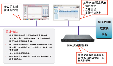 電話會議系統(tǒng)概述 電話會議系統(tǒng)具有多樣化的接入方式,可根據(jù)不同的需求情況,提供靈活、專業(yè)的組網(wǎng)方案;可以融入IMS網(wǎng)絡(luò),提供各種多媒體通信服務(wù)。 電話會議系統(tǒng)具有強大的會議資源提供能力,會議容量可從30方-1536方平滑擴容;基于硬件的專業(yè)會議橋技術(shù)和回音消除技術(shù),提供了良好的會議語音質(zhì)量以及可靠的系統(tǒng)保證。 支持預(yù)定會議、立即會議等多種會議形式,提供基于話機終端和WEB技術(shù)的會議管理和會議控制手段。 能夠?qū)崿F(xiàn)與視頻會議的互連互通。 會議系統(tǒng)可提供IP接口,接入IP終端、IP會議終端;可通過數(shù)字中繼/環(huán)路中繼與PSTN/PLMN相連,實現(xiàn)固話、手機等終端接入會議;可接入S口網(wǎng)關(guān),接入模擬用戶;可接入四線網(wǎng)關(guān),實現(xiàn)四線終端和調(diào)音臺接入。 硬件參數(shù)