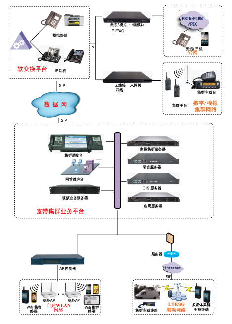系統(tǒng)同時(shí)具備與外部固網(wǎng)交換機(jī)、調(diào)度交換機(jī)及常規(guī)對(duì)講、集群車(chē)臺(tái)的互聯(lián)互通能力。