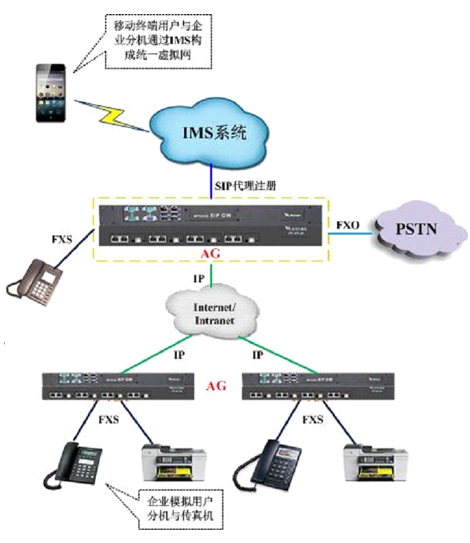 AG支持通過SIP代理注冊(cè)到IMS系統(tǒng),享受IMS系統(tǒng)的統(tǒng)一業(yè)務(wù)/管理/開通/維護(hù)。IMS典型業(yè)務(wù)如:彩鈴,一號(hào)通,統(tǒng)一CENTREX等;AG還具備自交換、總機(jī)、呼叫等待、呼叫轉(zhuǎn)接等典型PBX功能;此外,AG支持通過網(wǎng)絡(luò)SIP協(xié)議與IPPBX或者其它軟交換設(shè)備平臺(tái)互聯(lián),下行直接連接模擬話機(jī)(或傳真機(jī)等設(shè)備),達(dá)到語(yǔ)音接入的效果。 (中國(guó)集群通信網(wǎng) | 責(zé)任編輯:陳曉亮) |
