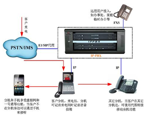 MPS2000 IPPBX適用于各種規(guī)模大小的政企單位,最大可支持萬門級(jí)的系統(tǒng)用戶容量。系統(tǒng)通過E1(數(shù)字中繼網(wǎng)關(guān)提供)接入PSTN公網(wǎng)或SIP代理注冊(cè)到移動(dòng)IMS,實(shí)現(xiàn)內(nèi)外網(wǎng)互通及IMS業(yè)務(wù)共享;通過模擬接入網(wǎng)關(guān)和網(wǎng)絡(luò)交換機(jī)下掛公司內(nèi)部模擬用戶及IP終端用戶,實(shí)現(xiàn)政企單位內(nèi)部用戶接入;同時(shí)還提供PC話務(wù)臺(tái)或者電話話務(wù)臺(tái)(支持自動(dòng)和人工轉(zhuǎn)接方式)功能;此外,通過IPPBX的邊緣接入網(wǎng)關(guān)(SBC)以及VLAN等技術(shù),實(shí)現(xiàn)在家辦公,移動(dòng)辦公,分公司接入等功能,讓員工在任何地方都和在辦公室感覺一樣。豐富完善的功能在滿足政企用戶持續(xù)增長(zhǎng)的通信需求的同時(shí),也大大提高了企事業(yè)單位整體運(yùn)行效率。