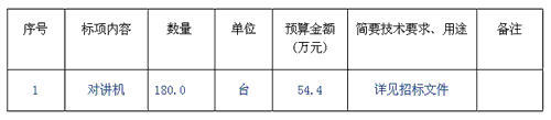 主頁(yè)(http://www.130131.com):浙江關(guān)于湖州市城市管理行政執(zhí)法局對(duì)講機(jī)采購(gòu)項(xiàng)目的公開(kāi)招標(biāo)公告 根據(jù)《中華人民共和國(guó)政府采購(gòu)法》等有關(guān)規(guī)定,浙江華誠(chéng)建設(shè)工程招標(biāo)代理有限公司受湖州市城市管理行政執(zhí)法局委托,就湖州市城市管理行政執(zhí)法局對(duì)講機(jī)采購(gòu)項(xiàng)目進(jìn)行公開(kāi)招標(biāo),歡迎國(guó)內(nèi)合格的供應(yīng)商前來(lái)投標(biāo)。 一、招標(biāo)項(xiàng)目編號(hào):HZHC-(采)2012010 采購(gòu)組織類型:分散采購(gòu)委托代理 二、招標(biāo)項(xiàng)目概況(內(nèi)容、用途、數(shù)量、簡(jiǎn)要技術(shù)要求等):